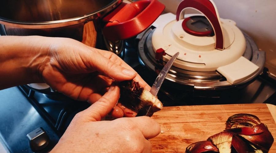 Seguiamo la ricetta by Lagostina, dal ricettario incluso nella confezione, della cottura dei carciofi.