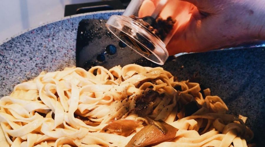 Dopo una piccola spolverata di pepe, la pasta è pronta per essere impiattata e degustata.