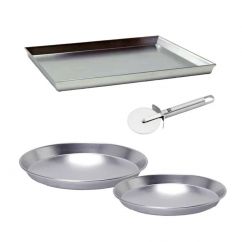 Set in confezione regalo per gli amanti della pizza o chi si ritrova alle prime armi e sta imparando l'arte del forno. Tutti gli accessori necessari per la tua pizza #homemade: teglia rettangolare in alluminio 35cm, 2 stampi rotondi bassi con [...]