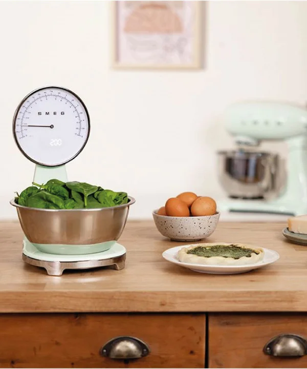 Bilancia da cucina analogica e digitale verde pastello – Smeg